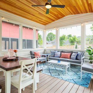 This adorable beach cottage is in the heart of the village of La Jolla in San Diego. The goals were to brighten up the space and be the perfect beach get-away for the client whose permanent residence is in Arizona. Some of the ways we achieved the goals was to place an extra high custom board and batten in the great room and by refinishing the kitchen cabinets (which were in excellent shape) white. We created interest through extreme proportions and contrast. Though there are a lot of white elements, they are all offset by a smaller portion of very dark elements. We also played with texture and pattern through wallpaper, natural reclaimed wood elements and rugs. This was all kept in balance by using a simplified color palate minimal layering. I am so grateful for this client as they were extremely trusting and open to ideas. To see what the space looked like before the remodel you can go to the gallery page of the website www.cmnaturaldesigns.com Photography by: Chipper Hatter